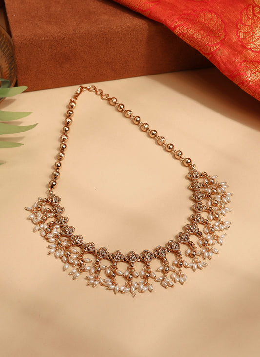 Gold Plated Necklace with Pearl Jhumkis and Stone Studded Earrings Set