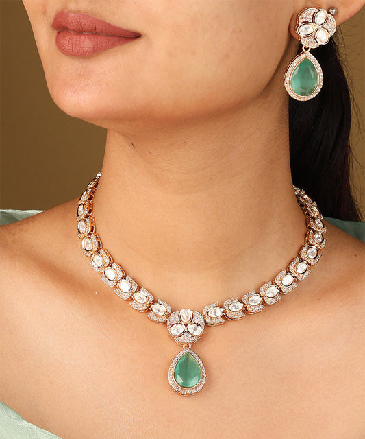 Kundan Necklace with Mint Green Stone Pendant