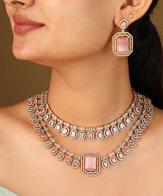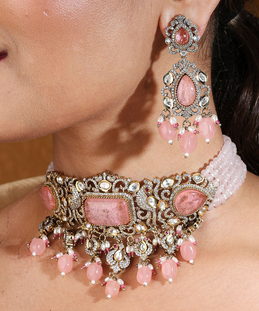 Statement Choker with Pink Stones and American Diamond Accents