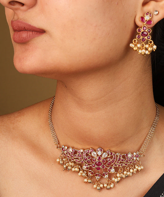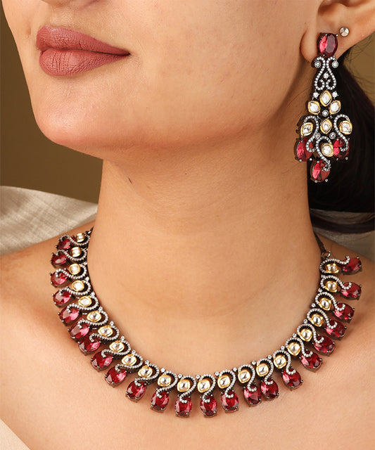 Simple Ruby American Stone Necklace Set