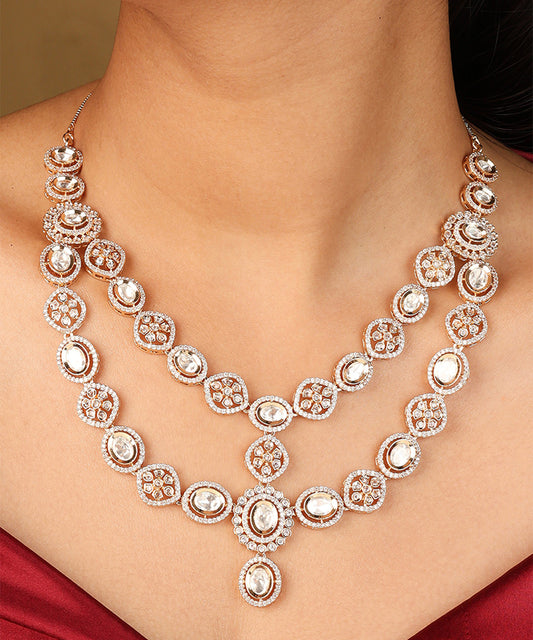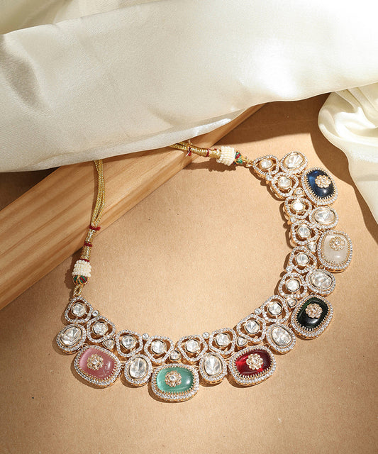 Gold Plated American Stone Studded Floral Shape Necklace