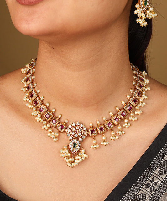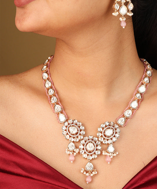 Uncut Kundan Necklace with Pink Pearls