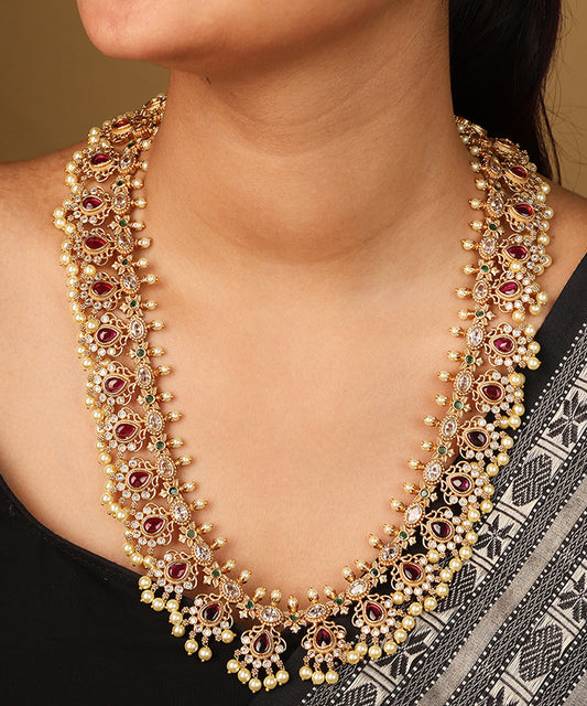 Gold Plated American Stone Studded Necklace Set in South Indian Style