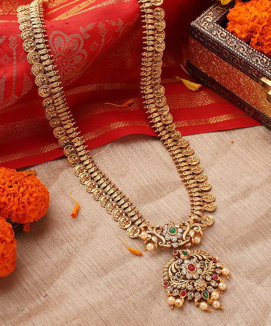 Royal Temple Jewellery Long Coin Necklace with Intricate Pendant