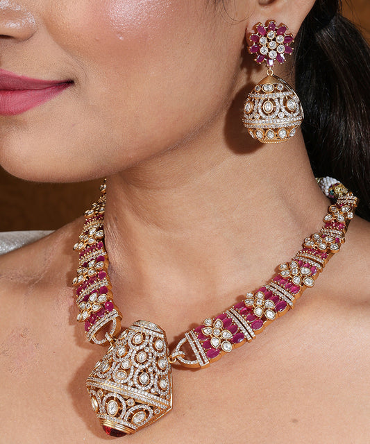 Hasli Style Necklace Set in Pink with American Stones