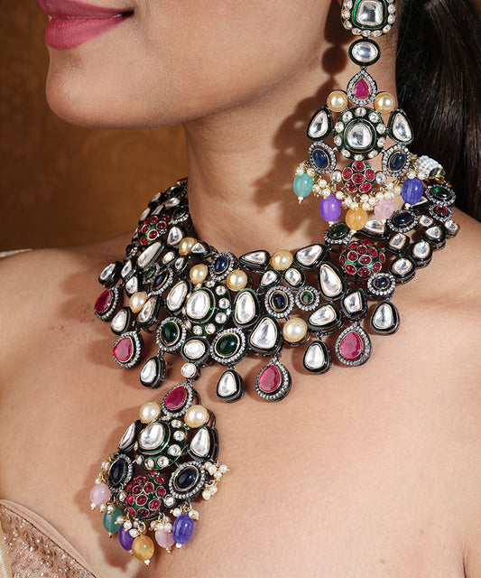 Multicolour Statement Choker with Jaipur Jadau Work