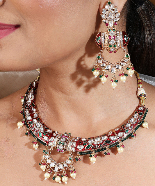 Jaipur Jadau Work Necklace Set with Kundan Stones