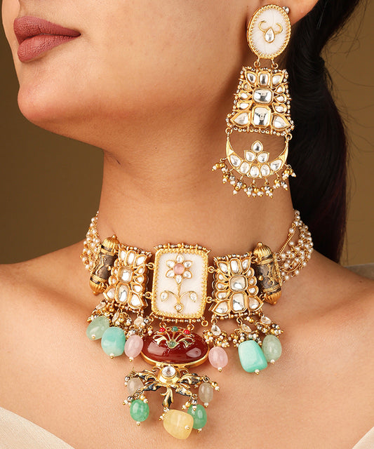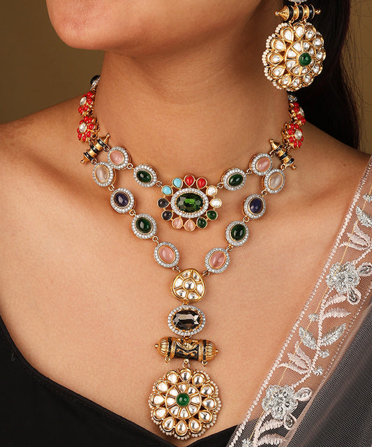 Traditional Multi Shape Colourful Transparent Stone Necklace