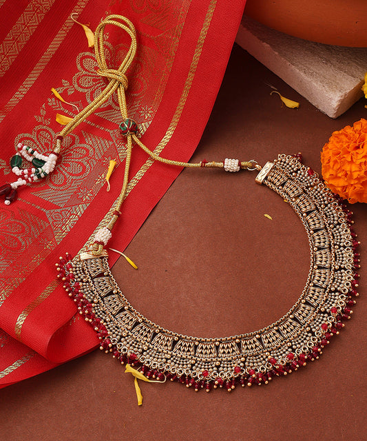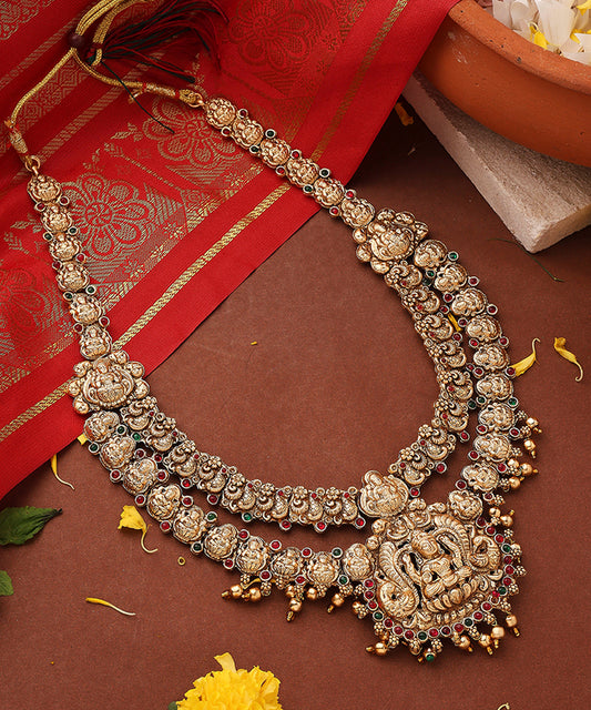 Antique Gold Lakshmi Necklace with Beaded Layers
