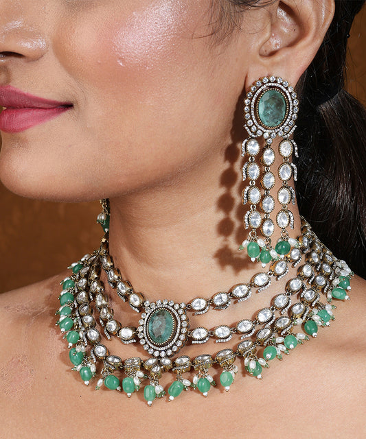 Bridal Choker with Mint Green Stones and Kundan