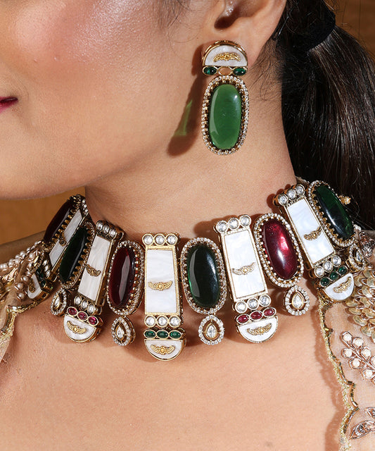 Designer Choker with Statement Red and Green Stones