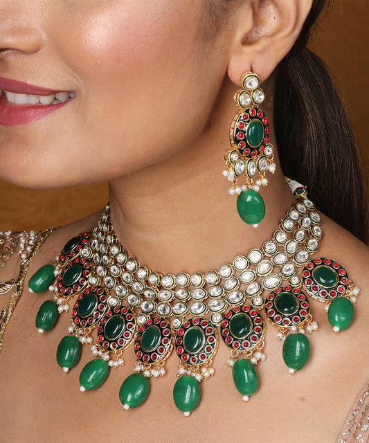 Kundan Necklace Set with Green Stones