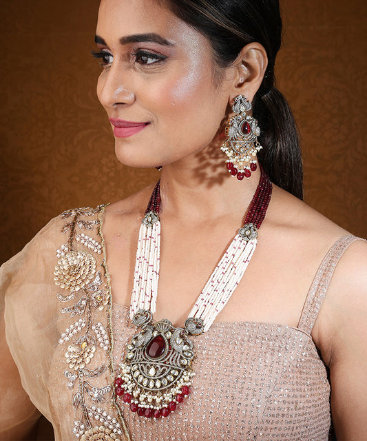 Long Bridal Necklace with Kundan Stones and American Diamond Stones
