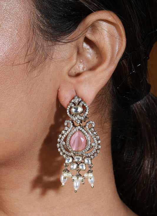Long Maharani Haar with Light Pink Beaded Mala and Statement Pendant