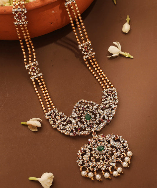 Layered Pearl Beaded Necklace with Kundan Pendant