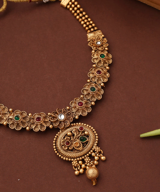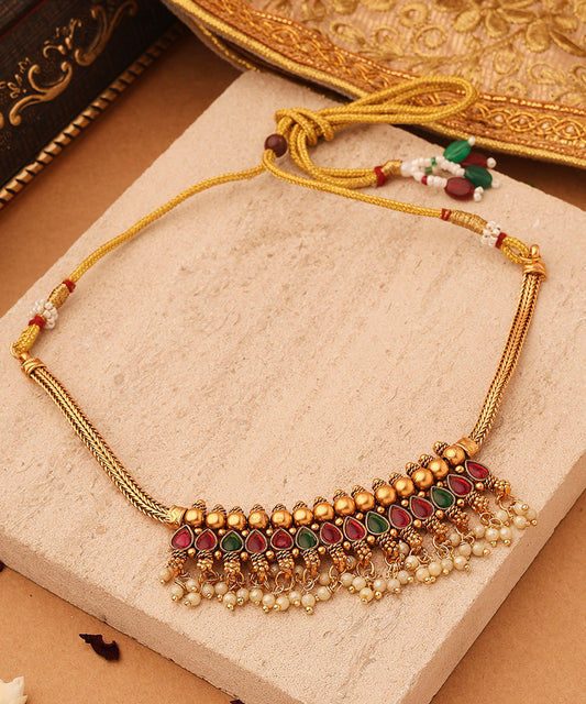 Gold Plated Guttapusalu Choker Necklace with Multicolour Stones