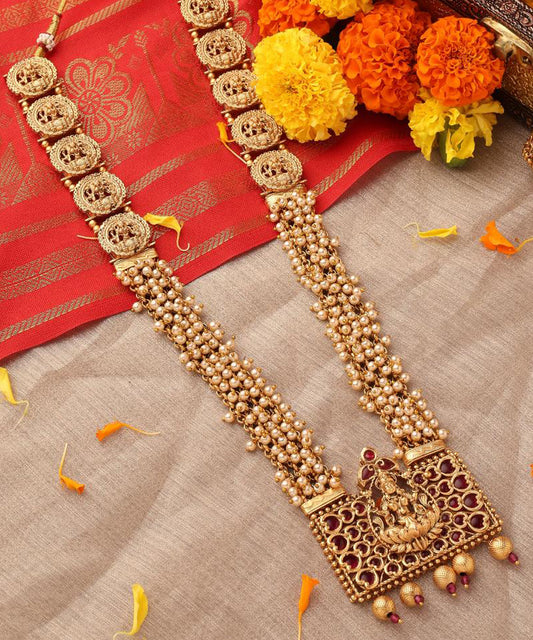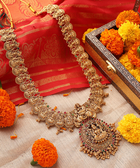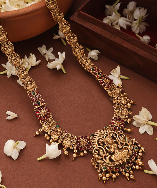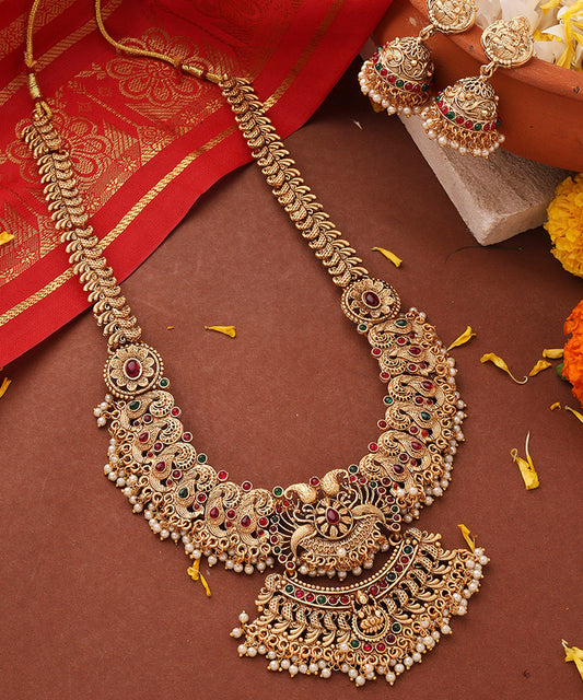 Statement Temple Jewellery Long Necklace with Kari Motif