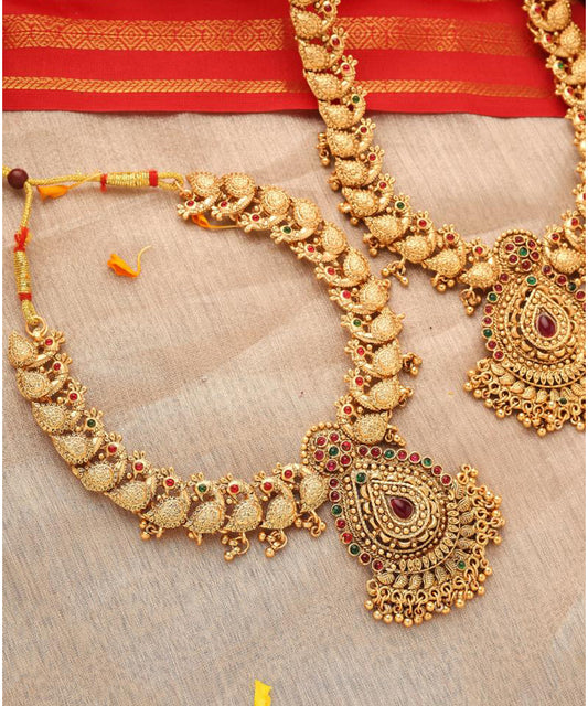 Long Statement Temple Jewellery Necklace with Kari Motif