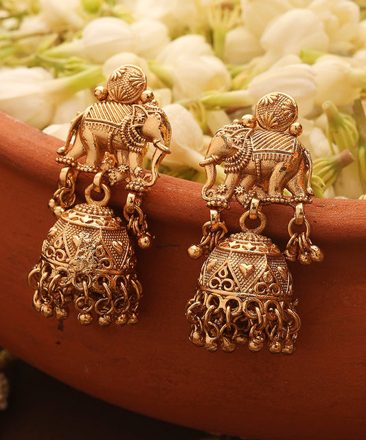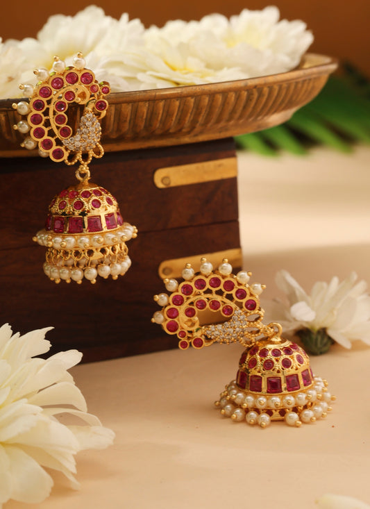 American Diamond Gold Plated Multicolor Traditional Jhumka