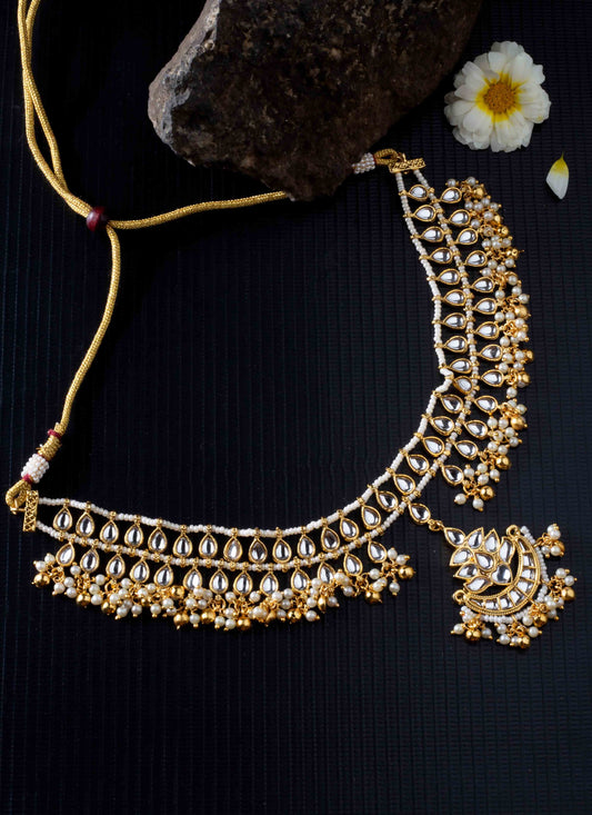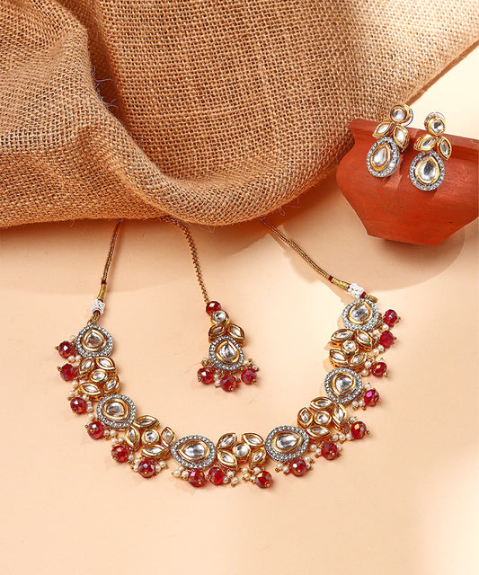 Gold Plated Uncut Kundan Studded Polki Choker Jewellery Set