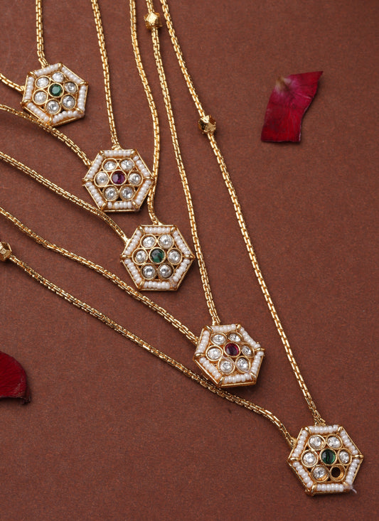 Five Layer Necklace with Multicolour Hexagon Pendants