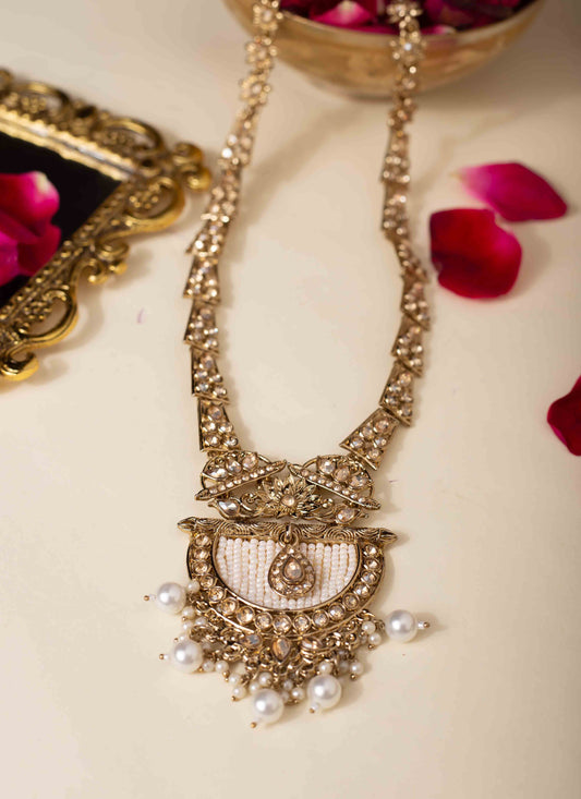 Kundan Pearl and Emerald Maang Tikka Earrings Set
