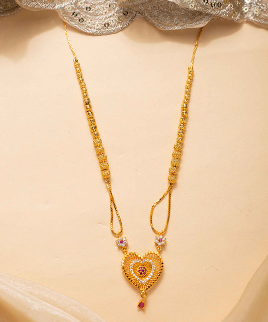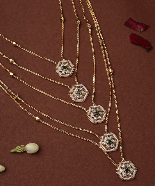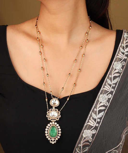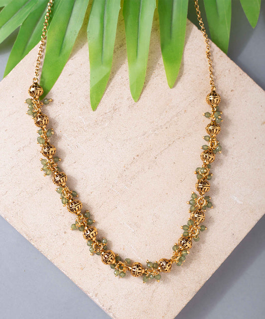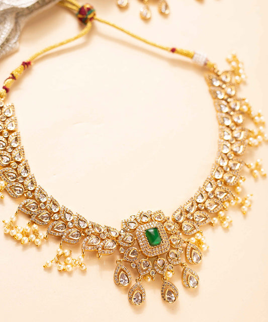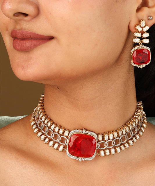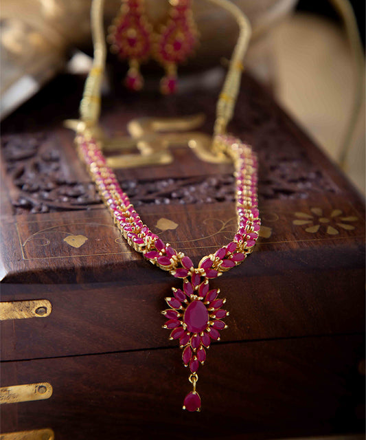 Delicate Gold Necklace Set with Red and Green Drop Stones