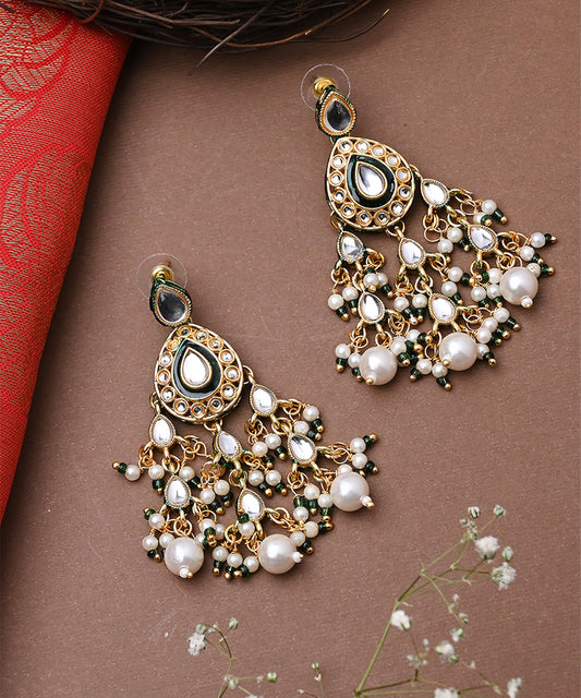 Intricate Design Jhumkas with American Diamonds and Pearls