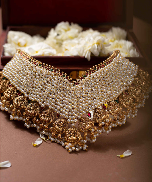 Gold Plated Pearl Studded Choker Jewellery Set