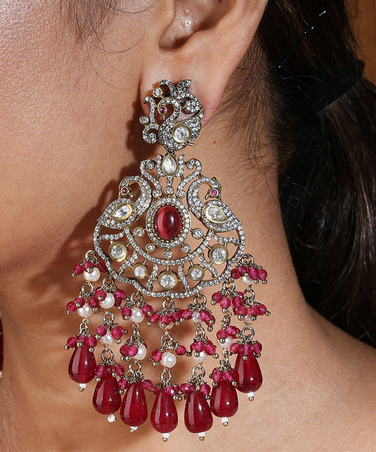 Bridal Ruby Stone Layer Necklace Set with Earrings and Maang Tikka