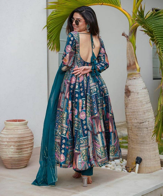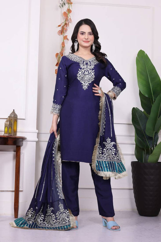 Blue Viscose Silk Embroidered Kurta Pant with Dupatta