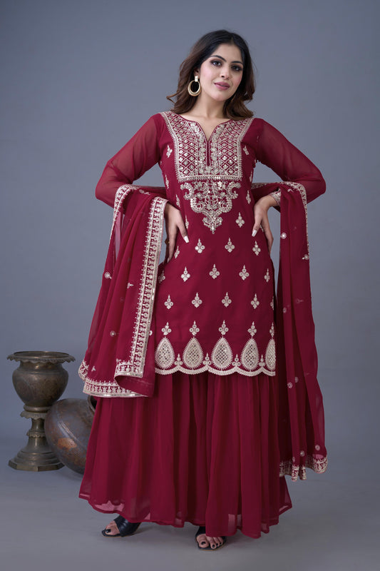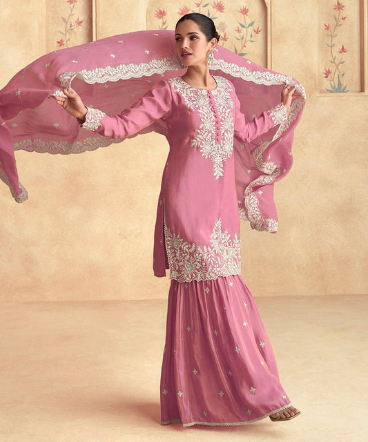 Onion Pink Embroidered Silk Blend Readymade Suit