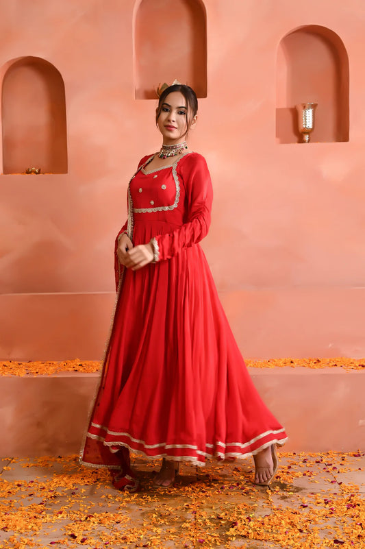 Red Georgette Zardosi and Lacework Anarkali Set