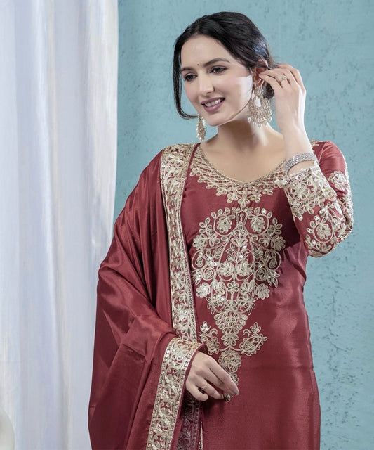 Salwar Kameez Dusty Rose Chinon with Dupatta