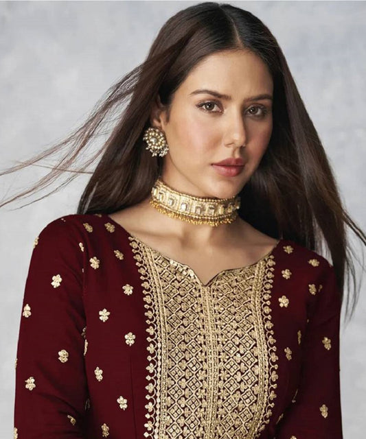 Salwar Wine Sequins Thread Work