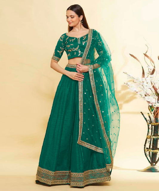 Art Silk Bottle Green Emerald Lehenga Choli for Mehendi Unstitched