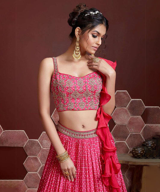 Stunning Pink Sequins Embroidered Organza Designer Lehenga Unstitched