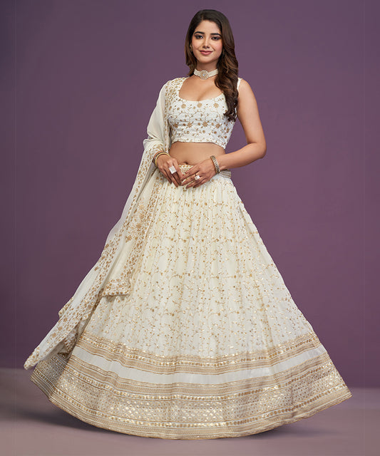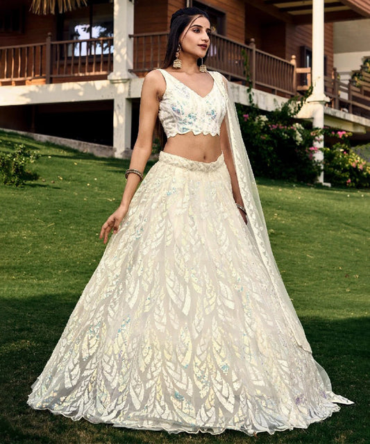 Off-White Thread Embroidered Organza Lehenga Choli Unstitched