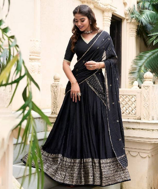 Black Chanderi Lehenga Choli with Intricate Zari Weaving Unstitched