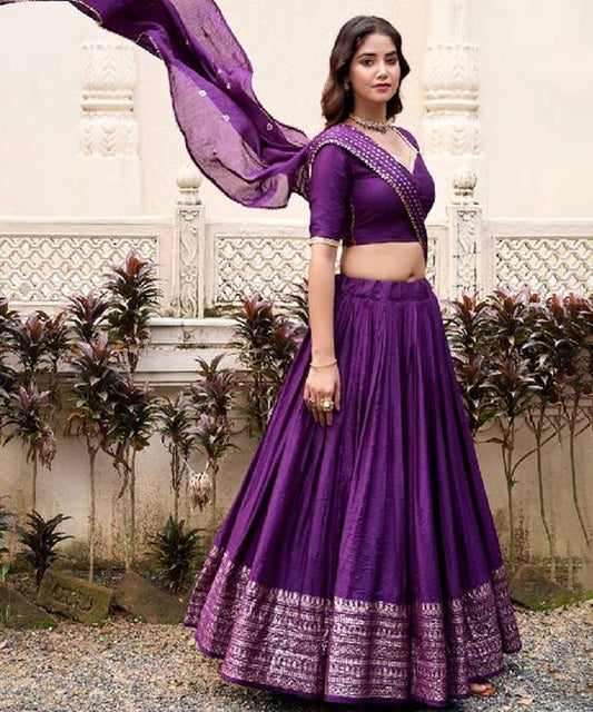 Purple Chanderi Lehenga Choli with Zari Weaving Unstitched