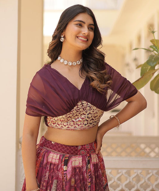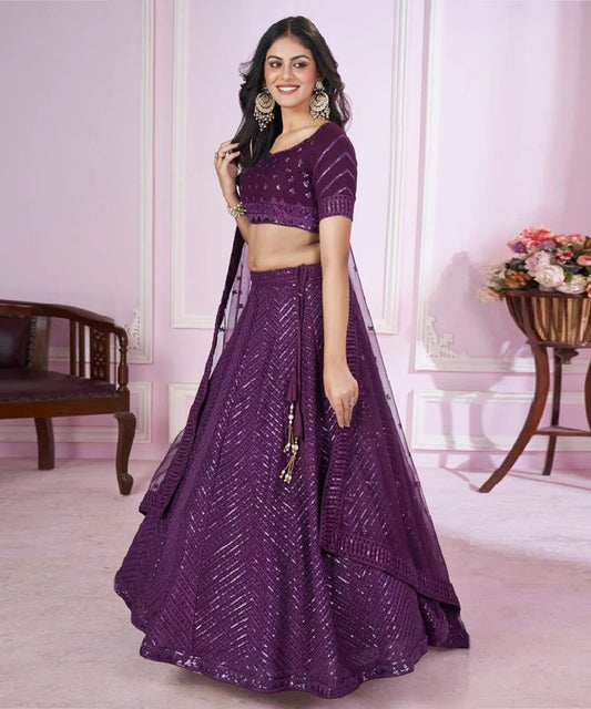 Purple Georgette Lehenga Choli with Elegant Embroidery Unstitched