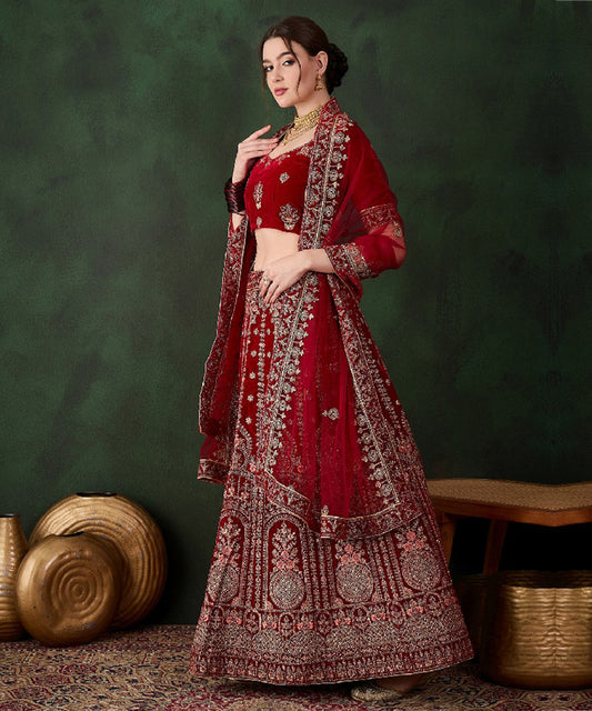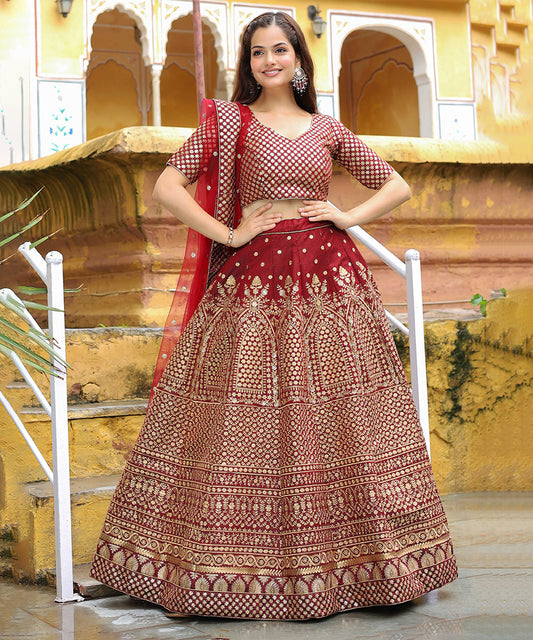 Maroon Bridal Lehenga Choli with Traditional Elegance Unstitched