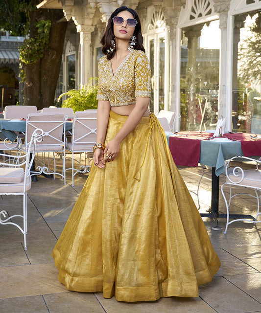 Yellow Embroidered Mirror Sequin Lehenga Choli with Dupatta Unstitched