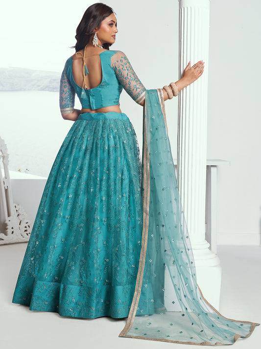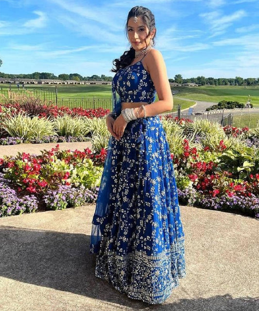 Interesting Blue Sequins Embroidered Lehenga Choli Unstitched