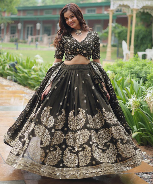 Green Sequins Work Silk Lehenga Choli with Luxurious Detailing Unstitched