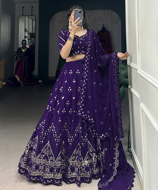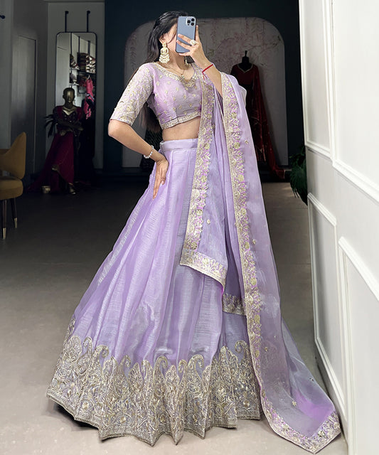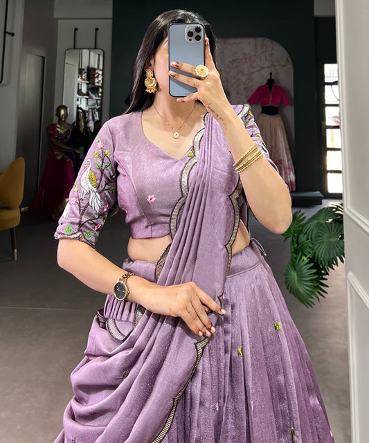 Lavender Vichitra Lehenga Choli with Sequins and Thread Embroidery Unstitched