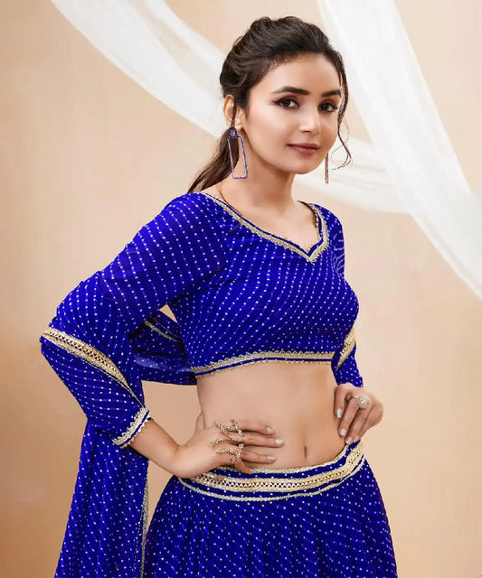 Blue Printed Georgette Lehenga Choli with Vibrant Patterns Unstitched