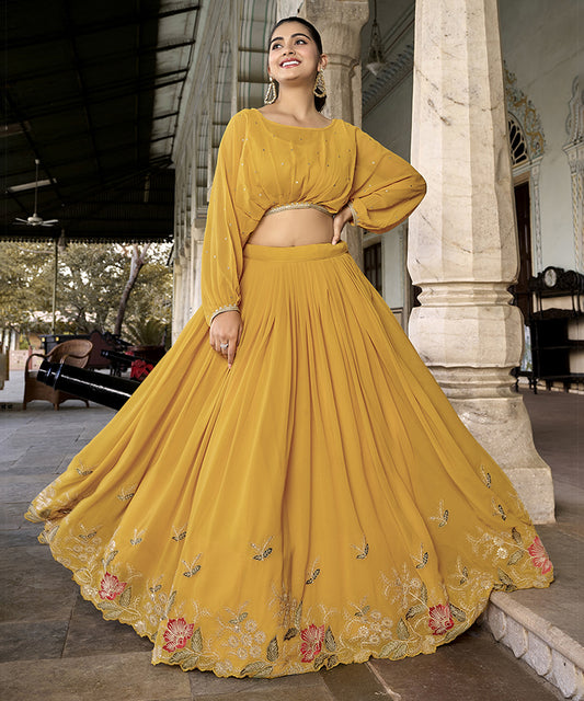 Yellow Sequins Work Georgette Lehenga Choli with Festive Charm Unstitched