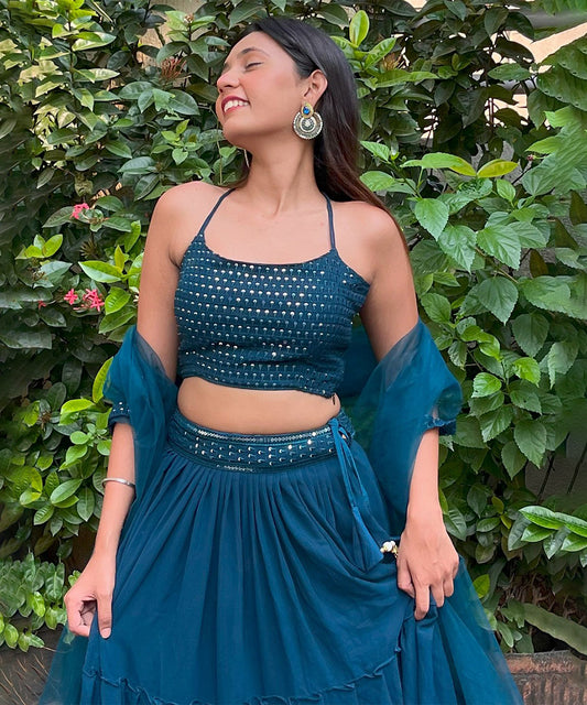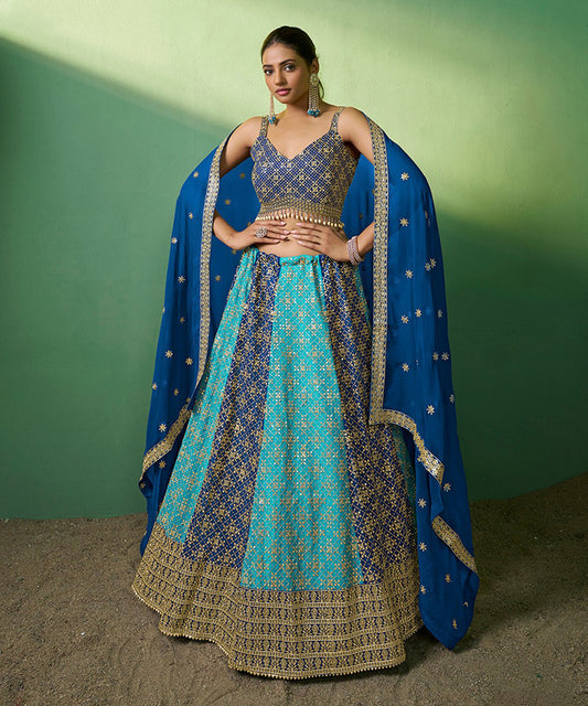 Lehenga Choli Blue Georgette Embroidered with Dupatta Unstitched