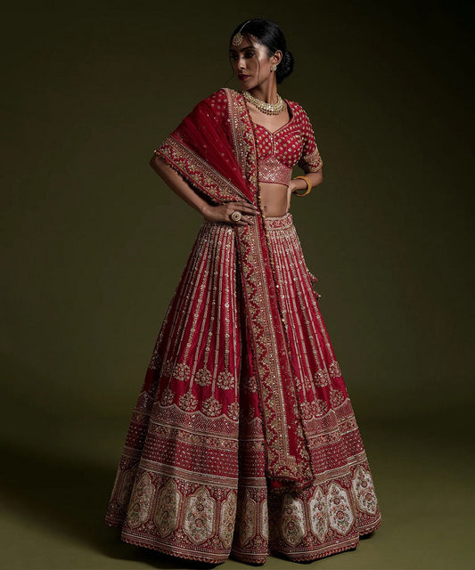 Lehenga Choli Red Bridal Silk with Sequins Work & Dupatta Unstitched